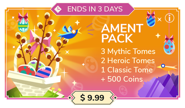 - Ament pack ($9.99): 3 Mythic Tomes, 2 Heroic Tomes, 1 Classic Tome and