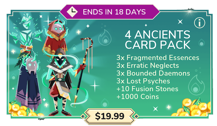 And if you would like some copies of all of the new Ancient cards and some fusion stones, you could consider the $19.99 exclusive pack granting 3 copies of each card +